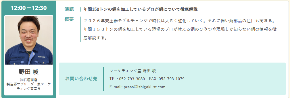 本セミナーでは、年間150トンの銅を加工するプロが、現場のリアルな情報について分かりやすく解説します!